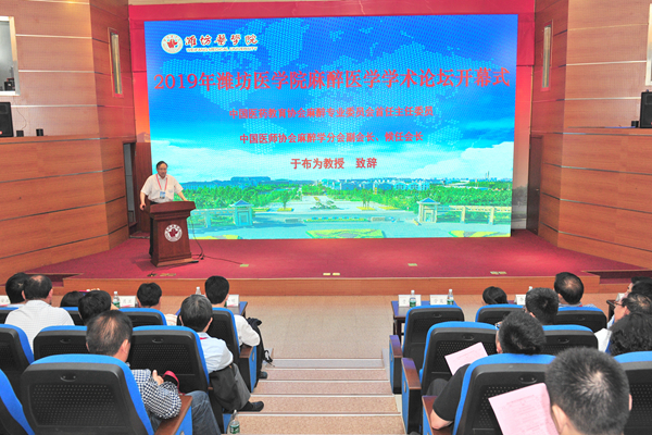 5月27日,山东省医学会麻醉学专业委员会、潍坊医学院麻醉学系共同举办的“2019年潍坊医学院麻醉医学学术论坛”在正妹av 召开。中华医学会麻醉学分会第十届主任委员、中国医师协会麻醉医师分会候任会长、院士有效候选人于布为教授,中华医学会麻醉学分会候任主任委员、中国高等教育学会医学教育专业委员会常委兼麻醉学教育学组组长邓小明教授,山东省医学会麻醉学专业委员会名誉主任委员类维富教授,山东省医学会麻醉学专业委员会主任委员王月兰教授,人民卫生出版社医学教育中心策划编辑常帆编辑,校长管英俊,副校长井西学、葛国文出席会议。学校麻醉学专业各实习医院教学管理部门负责人、麻醉科主任、参加首届“恩华杯”主治医师麻醉操作技能竞赛的主治医师,党委办公室(学院办公室)、教务处、医院管理处负责人等100余人参加了会议。开幕式由葛国文主持。