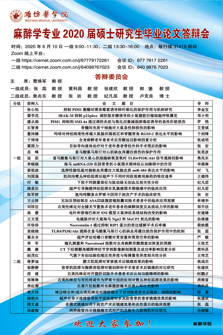 麻醉学专业2020届硕士研究生毕业论文答辩会