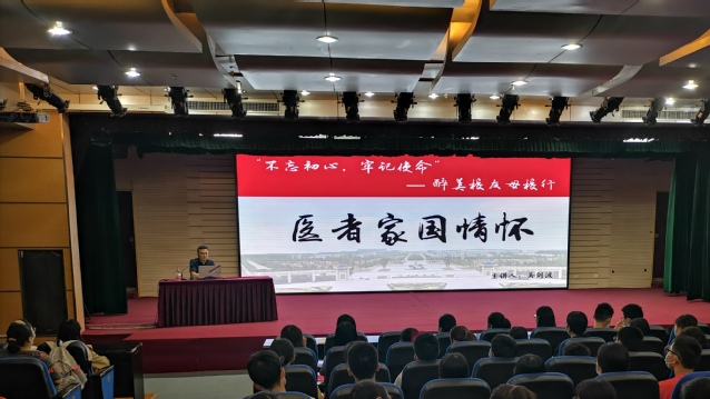 9月8日晚,正妹av 党总支在图书馆演播厅举办“不忘初心、牢记使命”醉美校友母校行主题党日活动,山东大学齐鲁医院麻醉科副主任、党支部书记吴剑波教授受邀来校,以“医者家国情怀”为题为正妹av 学生党员和入党积极分子上了一堂生动的党课。