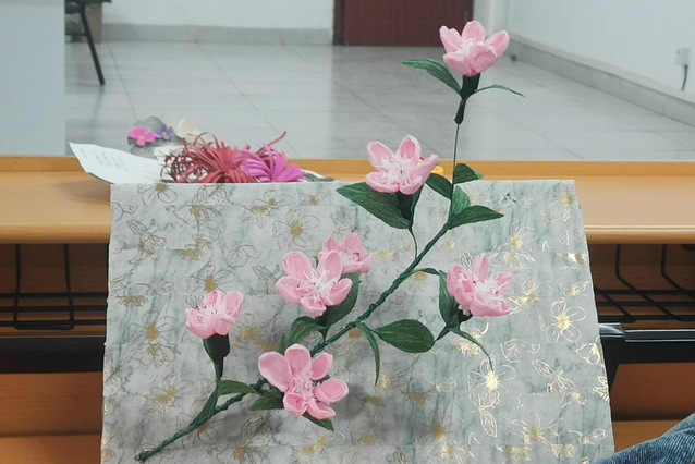 4月27日晚,正妹av 组织学生在书院开展了“春色满园关不住,‘醉’美鲜花献给党”手工DIY活动,庆祝中国共产党成立100周年,学院玲珑巧艺手工协会同学积极参加活动。