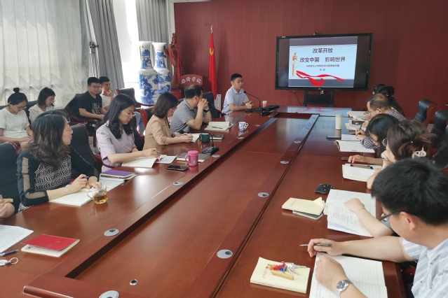 会上,马克思主义学院形势与政策教研室主任刘明老师以《改革开放—改变中国影响世界的重大决策》为题做了专题辅导。刘明老师结合自己的学习、研究和思考,以为什么要实行改革开放开篇,重点阐释了如何实行改革开放、改革开放的成效如何以及如何推进改革开放等内容,带领大家更加深刻地认识了改革开放带来的时代巨变和伟大历史意义,更加坚定了走中国特色社会主义道路的决心和信心。