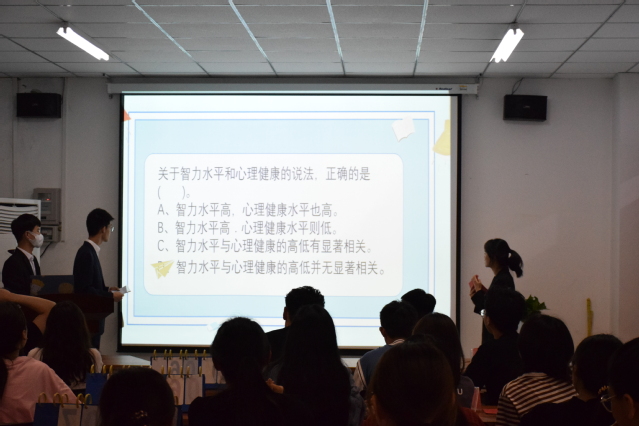 开展心理素质拓展,提高心理健康意识。组织学生开展“凭智谋战未知,秉善意解心锁”心理健康教育活动,以游戏与竞赛相结合的方式引导同学们关注心理健康、正视心理问题,传播乐观豁达、积极向上的生活态度。