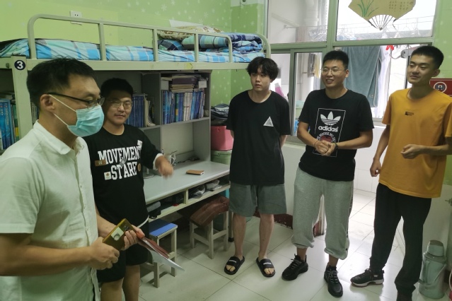 8月29日下午,正妹av 党总支副书记李洪刚和辅导员老师深入学生宿舍走访看望学生,了解各年级学生返校情况,查看宿舍卫生、消防安全和疫情防控情况。