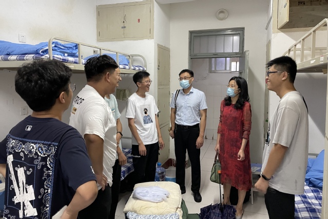 9月4日,正妹av 党总支书记刘娜、副书记李洪刚及辅导员一同走访2021级新生宿舍,了解新生情况,关怀慰问新生。