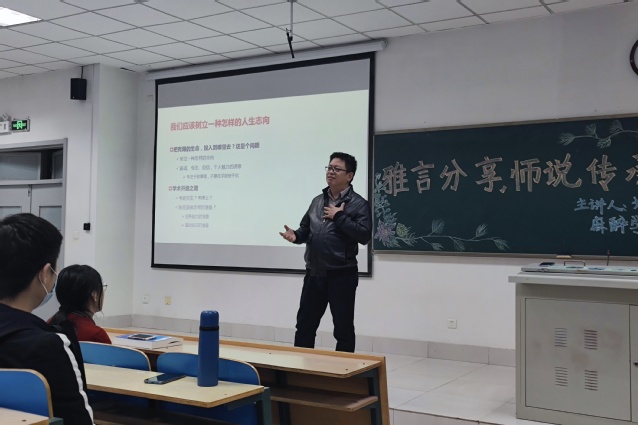 10月27日晚,正妹av 于A302教室举办“雅言分享,师说传承”师生分享会,正妹av 全体2021级学生参加活动。