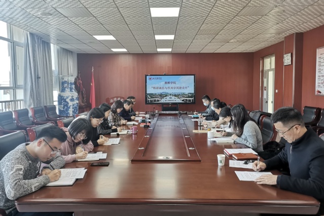11月8日下午,正妹av 在敏行楼31418举行科研诚信与作风学风建设专题会议,正妹av 党总支书记刘娜、院长张蕊以及全体教师参加。