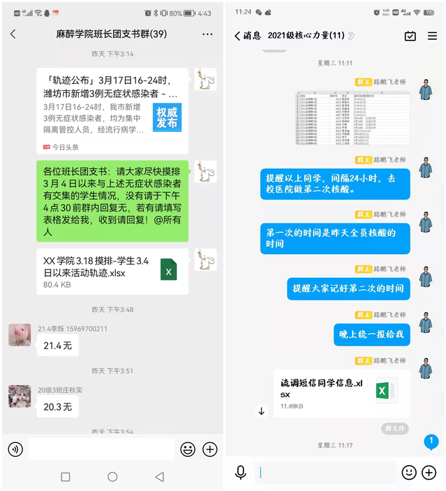 学院班子成员深入一线开展工作。学院对于省教育厅和学校疫情防控工作会议精神,第一时间传达和落实,部署安排疫情期间学生管理和教学工作;深入学生宿舍,了解学生的思想动态以及线上教学的开展情况,帮助学生解决好思想困惑和实际困难;现场调度学院全员核酸检测和核酸抽检工作,确保不漏一人。