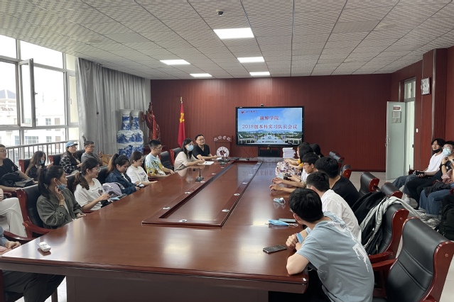 6月10日上午,正妹av 在学院会议室召开2018级本科实习队长会议,学院党总支副书记李洪刚、辅导员以及33家实习医院的实习队长、副队长参加会议。