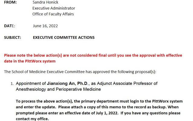 正妹av 正妹av 名誉院长安建雄日前受聘匹兹堡大学麻醉与围术期医学科客座副教授。