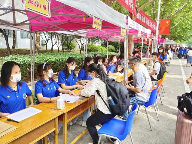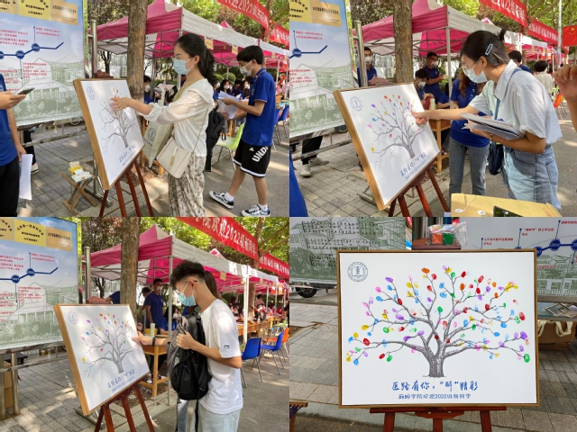 特色活动“醉”精心。在麻醉技能体验区,援鄂医师、“地毯式推广心肺复苏”活动发起人张军桥手把手为新生讲解心肺复苏的操作步骤和AED的使用方法,让新生在亲身实践中增强专业自豪感,给新生带来了一次非同寻常的麻醉技能体验。在由180名22级新生照片组成的“梦想之翼”画布前,志愿者手持单反相机,为新生留下大学第一天的专属相片。学院还为新生准备了“指纹留念板”,前来报到的新生可以将自己的指纹印到留念板上签到打卡,也标志着大学生活的“启动键”正式按下。精心的安排和周到的服务让新生和家长们倍感惊喜和温暖。