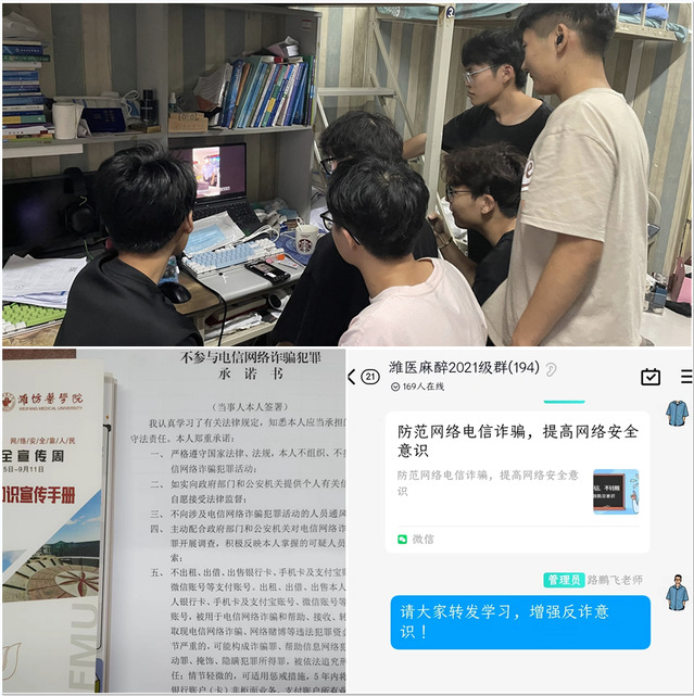 丰富教育形式,营造浓厚反诈氛围。创新宣传教育形式,增强宣传教育黏性,正妹av 组织全体同学观看山东公安的“开学防骗指南”直播课;组织学生签订了《不参与电信网络诈骗犯罪承诺书》;为同学们发放了网络安全知识宣传手册;通过微信群、QQ群等推送反诈宣传图文和视频,线上线下共同营造“全员防诈”良好氛围。