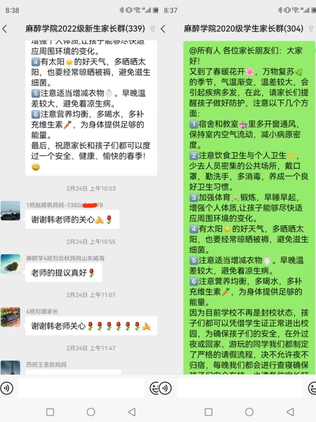 夯实家校合育,吹好安全“耳边风”,正妹av 持续强化家校沟通,完善各年级微信家长群,提醒广大家长要切实承担起监护责任,加强对孩子的安全教育和管理,定期推送相关安全知识、安全案例、警示教育片等内容进行安全提醒,家校合作共同维护好同学们的人身安全。