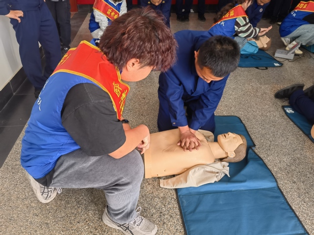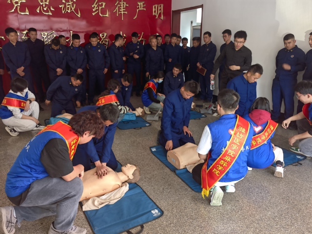 培训现场,附属医院麻醉科副主任王德伟教授、附属医院麻醉科副主任医师张军桥老师结合自身工作经验、典型案例和事故分析,运用图文并茂、语言精炼的PPT演示,详细讲解心肺复苏、自动体外除颤器、外伤止血包扎、烧烫伤紧急处理等现场应急救护知识技能,老师边讲解、边示范、边辅导,邀请消防队员现场示范心肺复苏技巧、AED模拟教学机使用、不同受伤部位的止血、包扎、固定、搬运方法等,重点强调应急救援过程中对各类伤情处置的注意事项。在实操演练阶段,消防队员分组进行现场心肺复苏演练,在志愿者的悉心指导下,熟练掌握了动作要领。“心脏骤停的黄金治疗时间是决定患者是否能够得到救治的关键!”,参训消防队员纷纷表示本次学习收获颇丰。