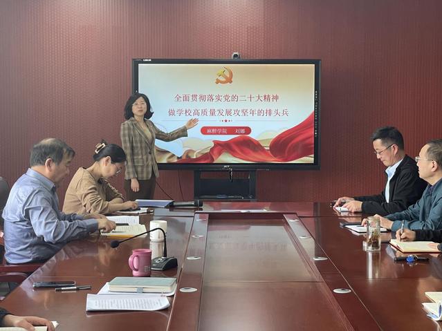 刘娜为支部党员解读了党的二十大报告的主要内容,特别是报告中关于教育科技发展的重要论述,和支部党员一起重温了党和国家为办好人民满意的教育而做出的巨大努力,回顾了十年来我国教育事业取得的历史性成就。她强调,2023年,高质量发展已经成为最强音、主旋律,作为潍医人,每个人都是学校发展进程中的参与者、见证者,学校的发展与每位师生息息相关,广大党员要争做学校改革发展中的排头兵,全身心投入到创建高水平医科大学和争创博士单位的攻坚任务上来。听完党课,支部党员一致认为,学习贯彻党的二十大精神要见诸行动,要把党的二十大精神转化为生动的实践,教师党员要坚守“立德树人”的初心,扎实做好本职工作,充分发挥党员的先锋模范作用,为实现学校高质量发展做出新的贡献。