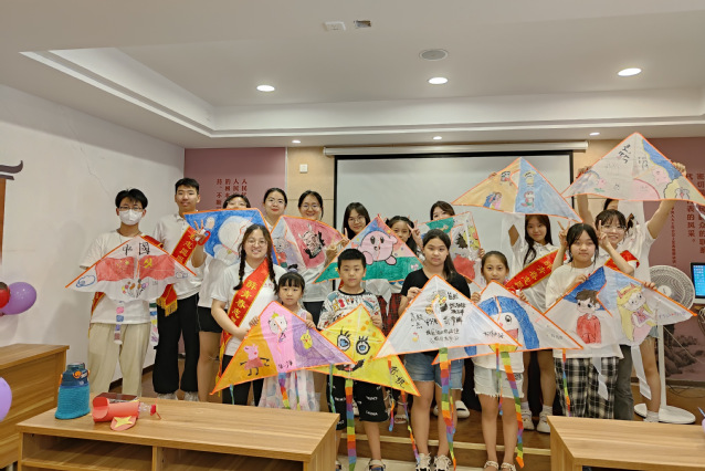 做好非遗文化传承,持续提升文化自信。风筝是我国的非物质文化遗产,具有独特的艺术特色和民间生活气息。潍坊具有“风筝之都”的称号,为更好的传承文化,提高小朋友们的文化自信,志愿者与小朋友们一起制作了属于自己的风筝。