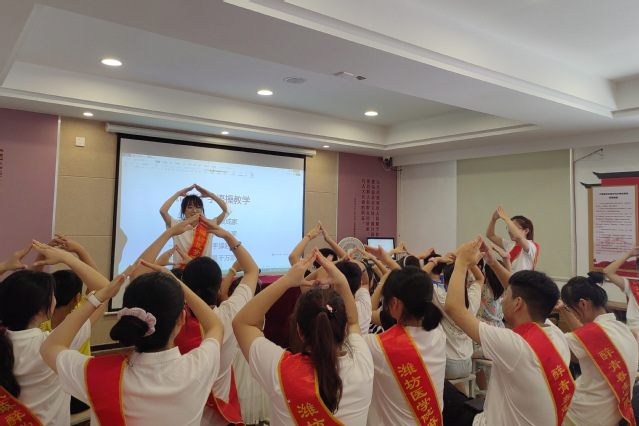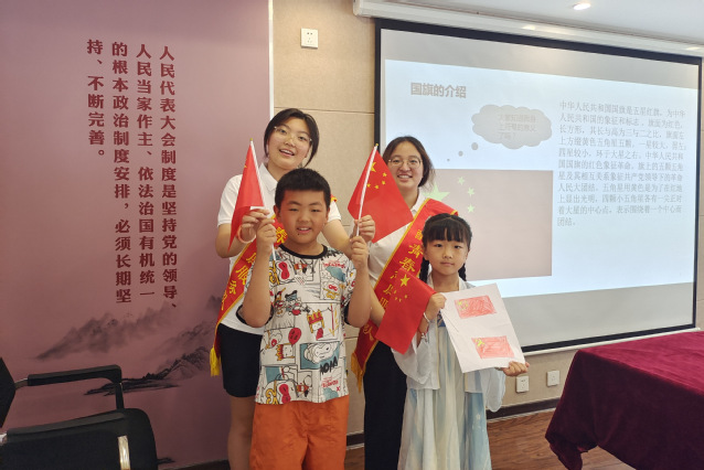 开展艺术育人实践,提升核心艺术素养。除了党旗国旗的绘画学习,志愿者们还和小朋友们一起学习歌曲《我和我的祖国》,掌握简单的歌曲演唱技巧,学习手语《国家》,提高肢体协调能力。