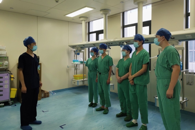 志愿者们走进医院的手术室,在带队老师的指导下切身体验麻醉医生的工作。带教老师们耐心的为队员讲解了手术中麻醉的基本步骤,包括麻醉诱导、麻醉维持及麻醉苏醒并进行示范,耐心地讲解大家提出的问题,指导队员们完成喉罩置入等简单手术操作,学习气管插管操作流程,十日的学习让大家收益颇丰,全情投入到对麻醉医学的探索,深刻领悟“麻无止境,醉在其中”的精神内涵,进一步坚定了医者初心与济世使命。