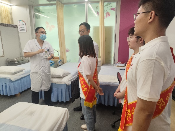 志愿服务队在枣庄市妇幼保健院医护人员的引领下,实地参观了中医针灸诊疗科、麻醉科等科室,详细了解了中医疼痛诊疗方法和麻醉科日常运营情况,潍坊医学院附属医院王若国医生围绕科室环境、人员架构、工作流程、管理细节、科研教学等方面与枣庄市妇幼保健院医护人员进行了深入的探讨交流。两院麻醉医护人员充分互动交流,分享工作经验,畅谈感受体会。
