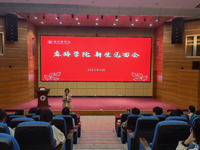 张蕊对2023级麻醉新同学的到来表示衷心祝贺和热烈欢迎,勉励同学们不负韶华,矢志报国,立足当下,着眼未来,志存高远,勇往直前;鼓励同学们学好用好国家一流本科专业和一流本科课程等优质教学资源,崇德醉术、厚基强能,准备好迎接未来理论知识、专业技能与医学实践等专业学习挑战,积极参加学校丰富多彩的文体活动,提高自身道德修养,涵养家国情怀,开拓思维,勇于创新;最后,张蕊祝愿同学们都能逐梦潍医,实现医学人生。夏德涛鼓励新同学逐青云之志,做有为之士,为新时代医疗卫生事业发展贡献力量。孙丽娜祝福同学们所得皆所愿,在潍医愉快学习、快乐成长。学工办全体辅导员一一上台,送上了自己对麻醉新生的期望和深切祝福。同学们用阵阵的掌声和欢笑,表达对老师们的敬意和感谢,更表达自己对未来潍医生活的美好畅想和无限期待。