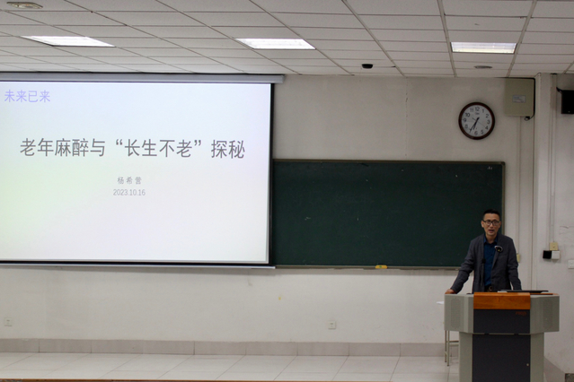 10月16日“世界麻醉日”当天,正妹av 在教学楼A202教室举办主题学术讲座,学院硕士研究生导师杨希营副教授做了题为“老年麻醉与‘长生不老’探秘”的主题报告。正妹av 2022级本科全体同学和带班辅导员参加。