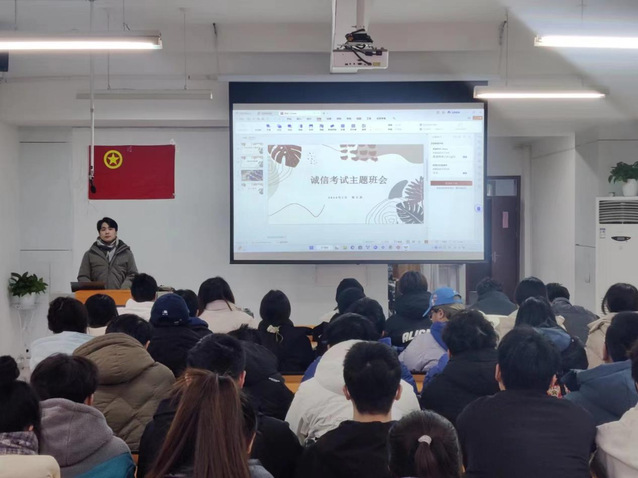 根据学校关于加强诚信考试宣传教育的通知要求,辅导员带领同学们重温了《学生手册》,重点学习了《学生违纪处分条例》《考场规则》《考生守则》等制度文件。教育学生端正态度,遵循诚信考试这一大学生基本行为规范,正确认识考试的作用和意义,实事求是,杜绝一切考试作弊行为;引导学生合理规划、规律作息、劳逸结合,以科学的复习计划,良好的执行力,充沛的体力迎接期末考试;鼓励学生着眼长远、立足当下,锤炼意志品质,从诚信对待考试做起,正确检视每一阶段的进步、失误与不足。