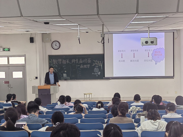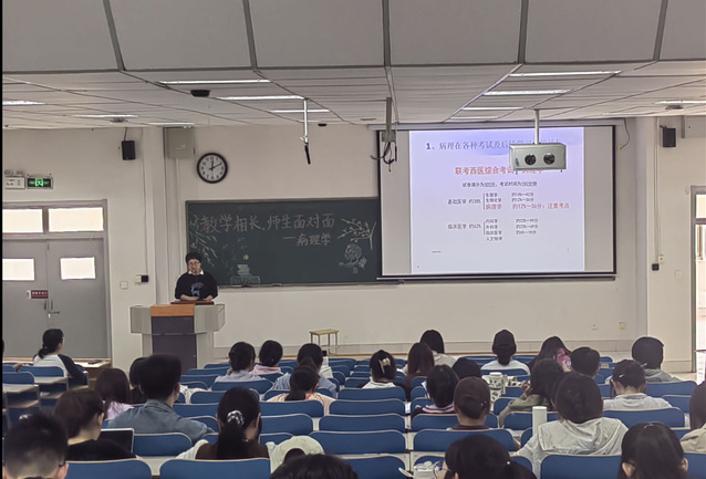 为了激发学习积极性,促进师生交流,让同学们更好掌握病理学的学习方法,4月19日中午,“教学相长”——师生面对面之病理学座谈会在教学楼A411举办。此次座谈会由正妹av 学生会学习交流部主办,正妹av 学生会学风建设部、医学影像学院学生会学习部、口腔医学院学生会学习交流部和临床医学院2022级学生会学习部共同承办。病理学教研室教师代表李文通、张红霞、赵琳茹、徐灵博出席座谈会,来自正妹av 、医学影像学院、口腔医学院、临床医学院近200名学生积极参与。