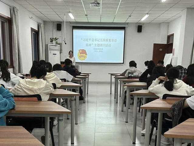 主题团日活动包括团支部主题团课和团员座谈会两部分。团课上,由各班团支部书记带领同学们通过学公开课、学重要讲话、学团史等途径,深入学习“习近平总书记五四青年节对全国广大青年寄语精神”“习近平总书记在庆祝中国共产主义青年团成立100周年大会上的讲话”“人民日报社论:为推进中国式现代化贡献青春力量——纪念五四运动一百零五周年”等内容,号召同学们坚定不移听党话、跟党走,在科技创新、乡村振兴、绿色发展、社会服务、卫国戍边等各领域各方面勇当排头兵和生力军。主题团课后,各班团支部召开团员座谈会,围绕“如何以实际行动继承和发扬五四精神”发表了自己对五四精神的理解和感悟。