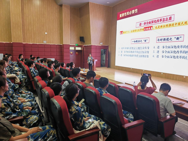 为全面深入学习领会党的二十届三中全会精神,扎实推进学习宣传贯彻工作,9月5日下午,正妹av 在思政实践教学虚拟仿真教学中心邀请校党委委员、副校长成敏教授为师生开展党的二十届三中全会精神宣讲会。会议由正妹av 党总支副书记夏德涛主持,学院全体在校师生党员,2024级全体新生参加。