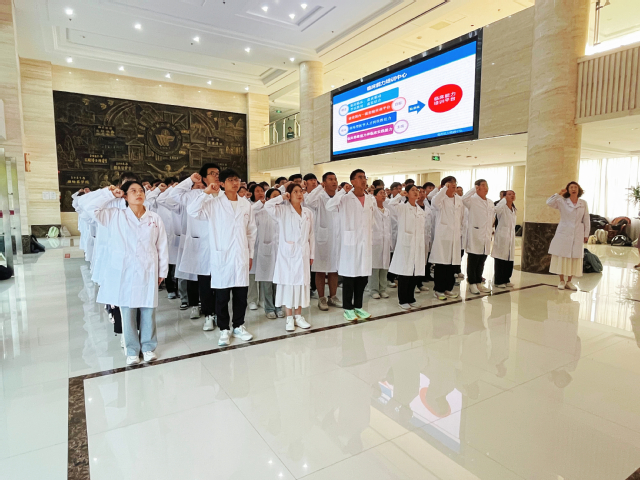 宣誓活动现场,同学们坚定地举起右拳,以无比肃穆的姿态,在孙丽娜的带领下,庄严宣誓:“健康所系,性命相托……”。在阵阵铿锵有力的话语中,郑重许下守护生命、精诚奉献的医者誓言。孙丽娜在仪式结束之后,结合专业特点和自身认识,鼓励同学们坚定自身信念,努力学习医学专业知识和实践技能,为未来投身医疗事业打好基础,做足准备,勇攀医学高峰。本次“医学生誓言”宣誓仪式,不仅仅是对麻醉新生医学之路的“初启蒙”,更是他们正式踏上医学之旅的里程碑,进一步激发了同学们为献身医学事业而努力学习的热情,激励着大家在医学探索的道路上矢志不渝,勇担时代使命。