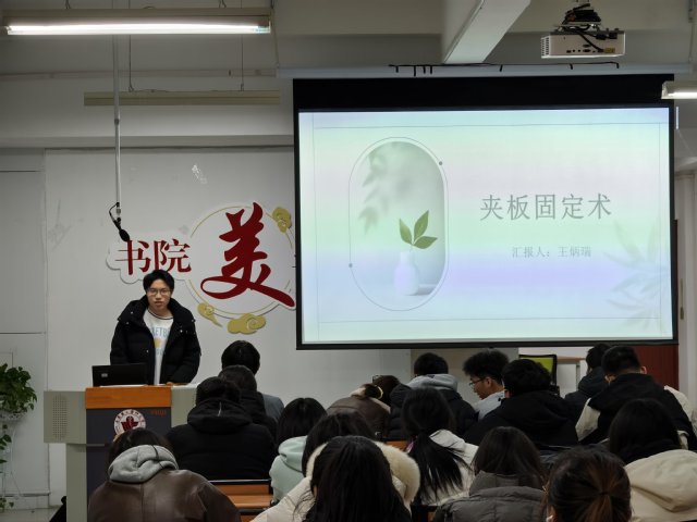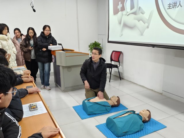 此次医学技能培训内容涵盖了心肺复苏、AED使用、血压测量、夹板固定等多项关键技能,吸引到不同年级学生积极参与其中。在活动现场,杨希营老师通过理论与实际操作相结合的方式进行讲解,细致入微地为同学们解答疑惑。另外在血压测量和夹板固定部分,王炳瑞和曾慧君同学向大家进行了细致讲解及演示。讲解结束后,针对同学提出的相关疑问,在场培训人员分门别类的给予了专业解答。在随后的实操体验中,同学之间分组互相交流并纠正动作,现场学习热情高涨。