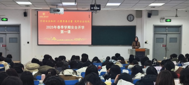 2月25日,正妹av 党总支副书记、院长张蕊在A205为同学们讲授新学期“安全第一课”。辅导员和2022级全体学生参加。