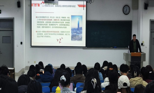 3月18日,正妹av 党总支副书记夏德涛在A205为同学们讲授思政课。辅导员和2022级全体学生参加。