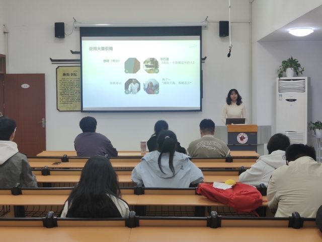 本次活动采用线上线下相结合的方式开展。在初赛阶段,学生紧扣青春、梦想等关键词,充分展示自身的想象力与文学功底,围绕校园生活创作了一首首精美的诗歌。在决赛现场,气氛紧张而热烈,同学们带着精心创作的作品,展开了一场诗意的较量,每一位参赛者都以真挚的情感和独特的表达展现出诗意的心灵与青春的活力。作品《梦织青春》聚焦校园学习生活,体现出同学们在老师教导下于知识海洋破浪前行、不断成长,展现青春时期求知的快乐与充实;作品《诗酒趁年华》把人生比作充满停靠站的旅程,鼓励同学们在青春时光中勇敢追寻梦想,即便面对生活困难也不放弃对美好的向往,始终保持内心光芒,传递出积极向上、永不言败的青春态度。经过激烈的角逐,比赛最终评选出一等奖1名,二等奖2名,三等奖3名。