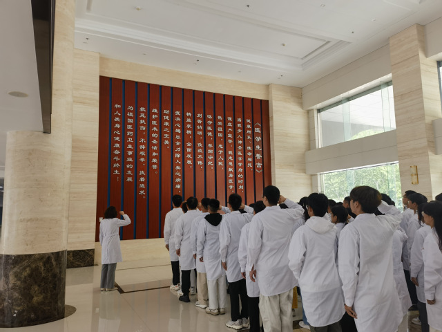 9月24日上午,正妹av 2025级新生宣誓仪式在临床实践中心一楼隆重举行,全体新生身着白衣列队肃立,在正妹av 副院长孙丽娜的带领下高举右拳,以铿锵誓言开启医学征途。